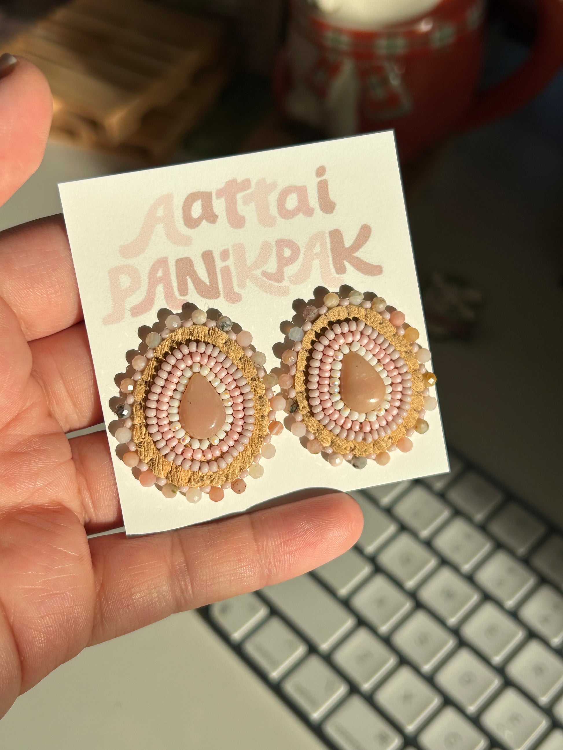 Blush pink opal studs