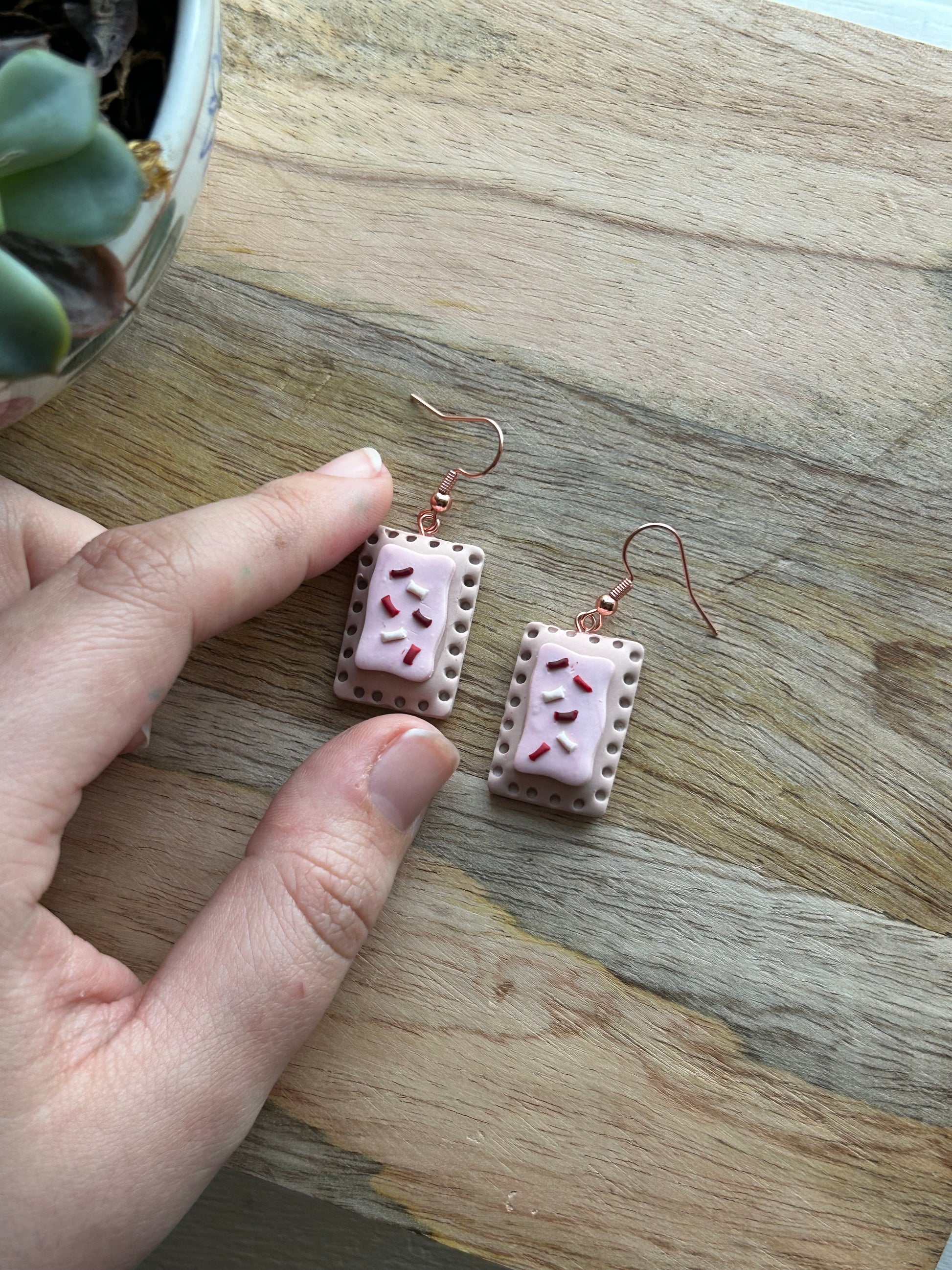 Polymer clay pink pop tart earrings. There is only one pair of these! Get them while they last.